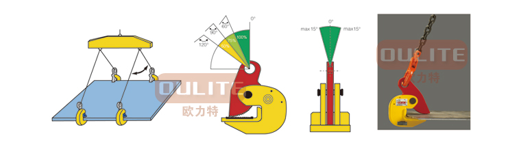 .額定載荷是指吊鉗成對使用、吊點夾具為60度時允許起吊的最大重量,吊裝作業中兩只或4只配套成組使用
